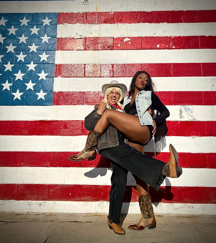 Substack keeps filtering my photo with my hand guns as lighter, and I don’t know why…but I’m just gonna pretend it’s giving me an old western vibe. Shoutout to this American Flag wall we found on the way to the concert.